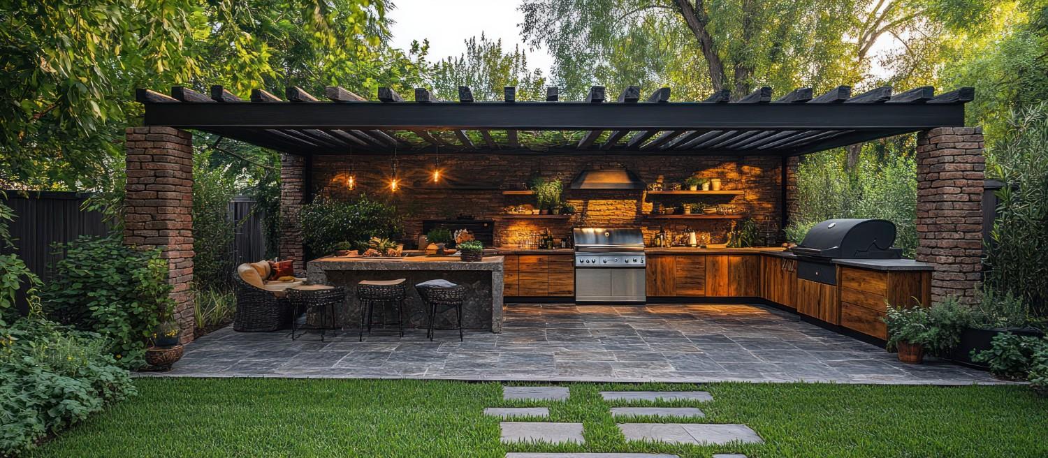 Our outdoor kitchen designs blend perfectly with your existing landscape through thoughtful hardscape elements like custom stone pathways, retaining walls, and decorative borders. We integrate softscape features including strategic plantings, natural screening, and seasonal color elements that complement your cooking space. Сustom lighting solutions illuminate both functional areas and landscape features, creating a cohesive outdoor living environment.